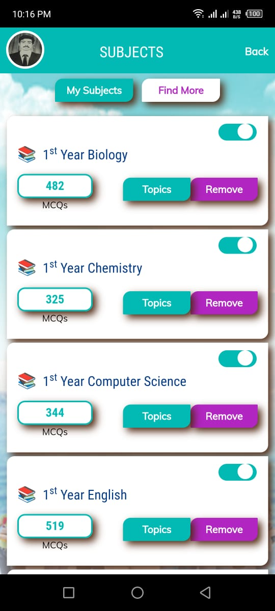 You can see a list of all of the subjects from your course and then add / remove for study.